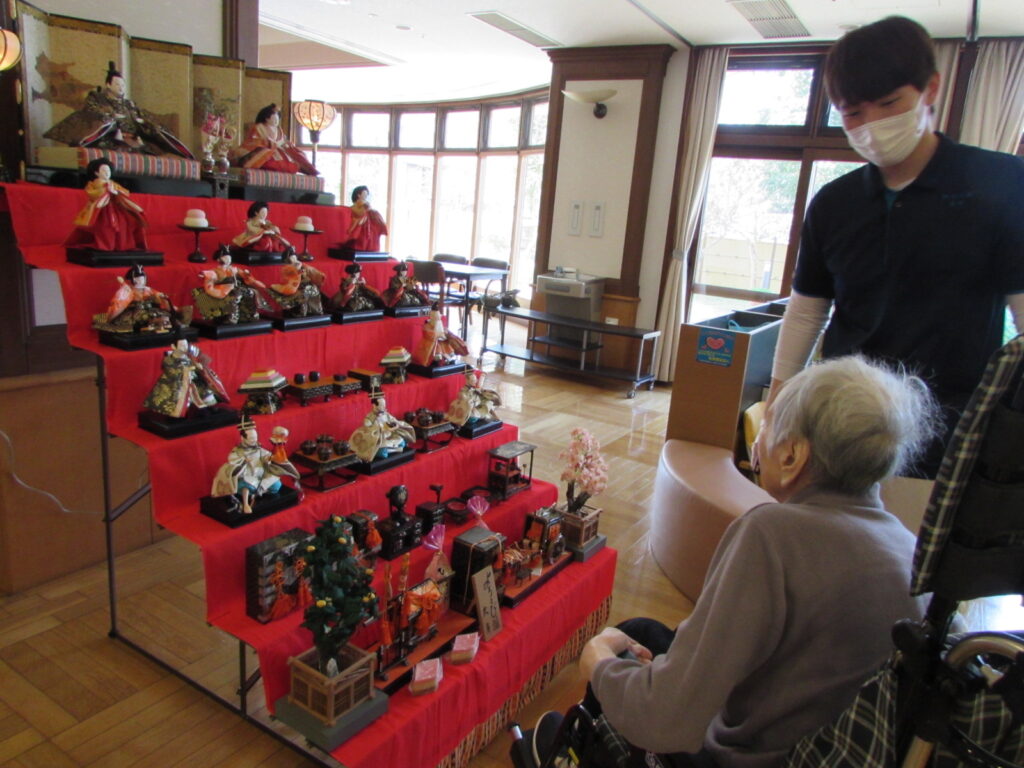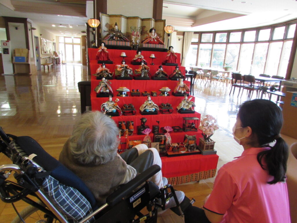 この豪華なひな壇は、和みの園でご入居されたご親族様から受け継ぎました。毎年飾るたびに、元気なオス型とご家族様の感謝のお姿を思い出し、初心に戻れるそんな時間のひとつです。